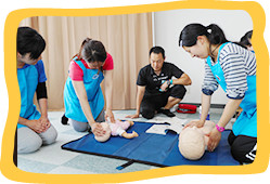 職員は救命講習を修了し、救命技能を取得しています。年1回の指導のもと、救急法の研修を行っています。